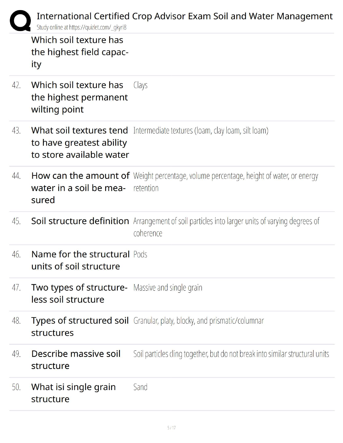 Unlock your potential and pass the International Certified Crop Advisor (CCA) exam on your first attempt with our comprehensive study guide for the 2025/2026 academic year. This essential resource focuses on the critical Soil and Water Management section, providing clear, concise elaborations on core concepts. Master fundamental definitions such as anions, cations, Cation Exchange Capacity (CEC), and Anion Exchange Capacity (AEC). Deepen your understanding of the factors influencing CEC, and memorize key estimate values for various soil components like SOM, vermiculite, and montmorillonite clay. This guide is expertly crafted to help you avoid resits by building a strong foundation in soil science, ensuring you're fully prepared to succeed.