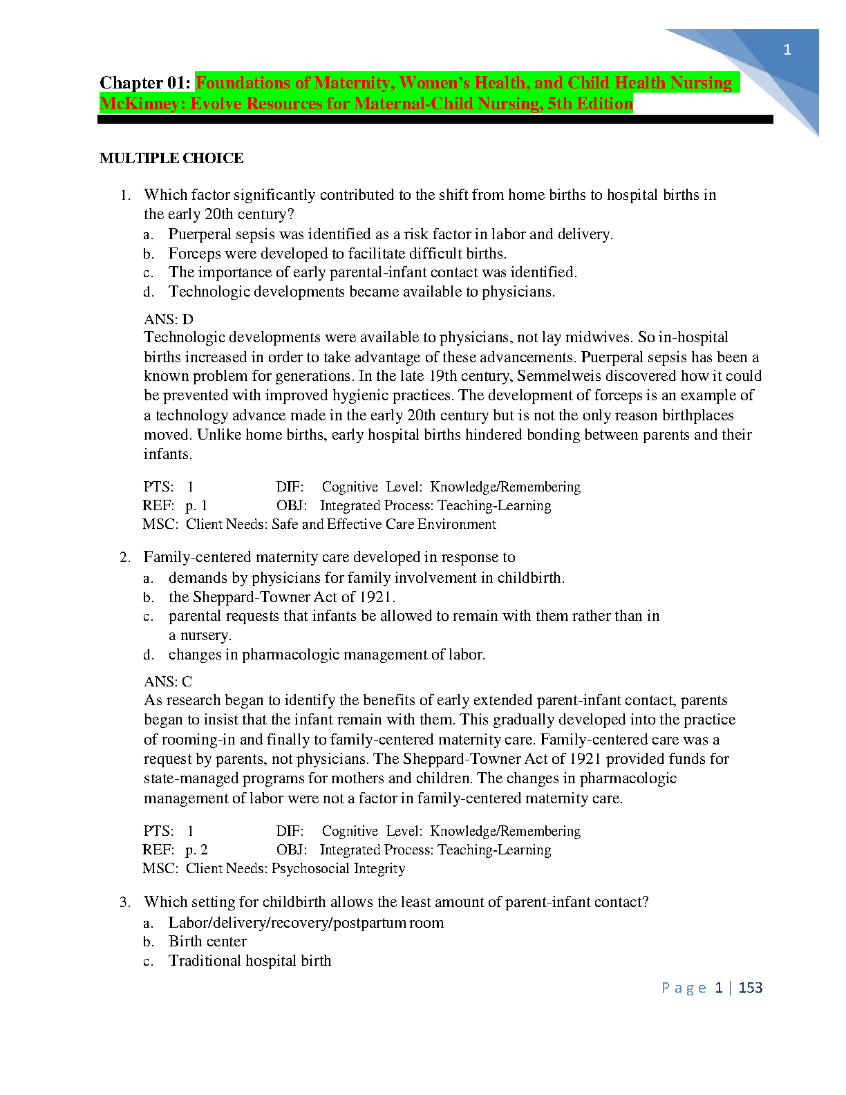 Achieve academic excellence with the official Test Bank for Maternal-Child Nursing, 5th Edition by McKinney et al. This comprehensive resource is packed with hundreds of exam-style questions, complete with detailed answers and rationales, covering all chapters of the textbook. It's the ultimate study tool designed to help nursing students master key concepts, prepare effectively for exams, and solidify their understanding of maternity and pediatric care. Please note: This is a digital test bank, not the physical textbook.