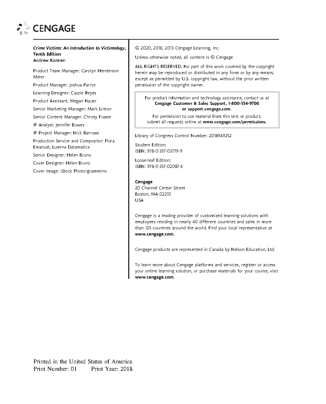 Test Bank for Crime Victims: An Introduction to Victimology, 10th Edition by Andrew Karmen