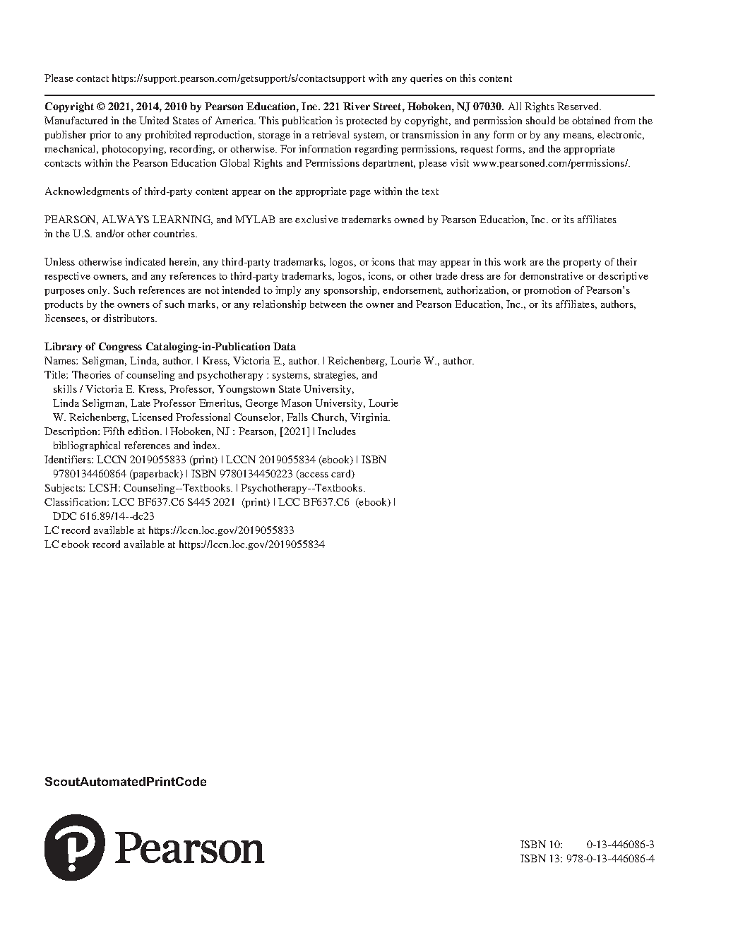 Test Bank for Theories of Counseling and Psychotherapy: Systems, Strategies, and Skills, 5th Edition by Victoria E. Kress, Linda Seligman, Lourie W. Reichenberg
