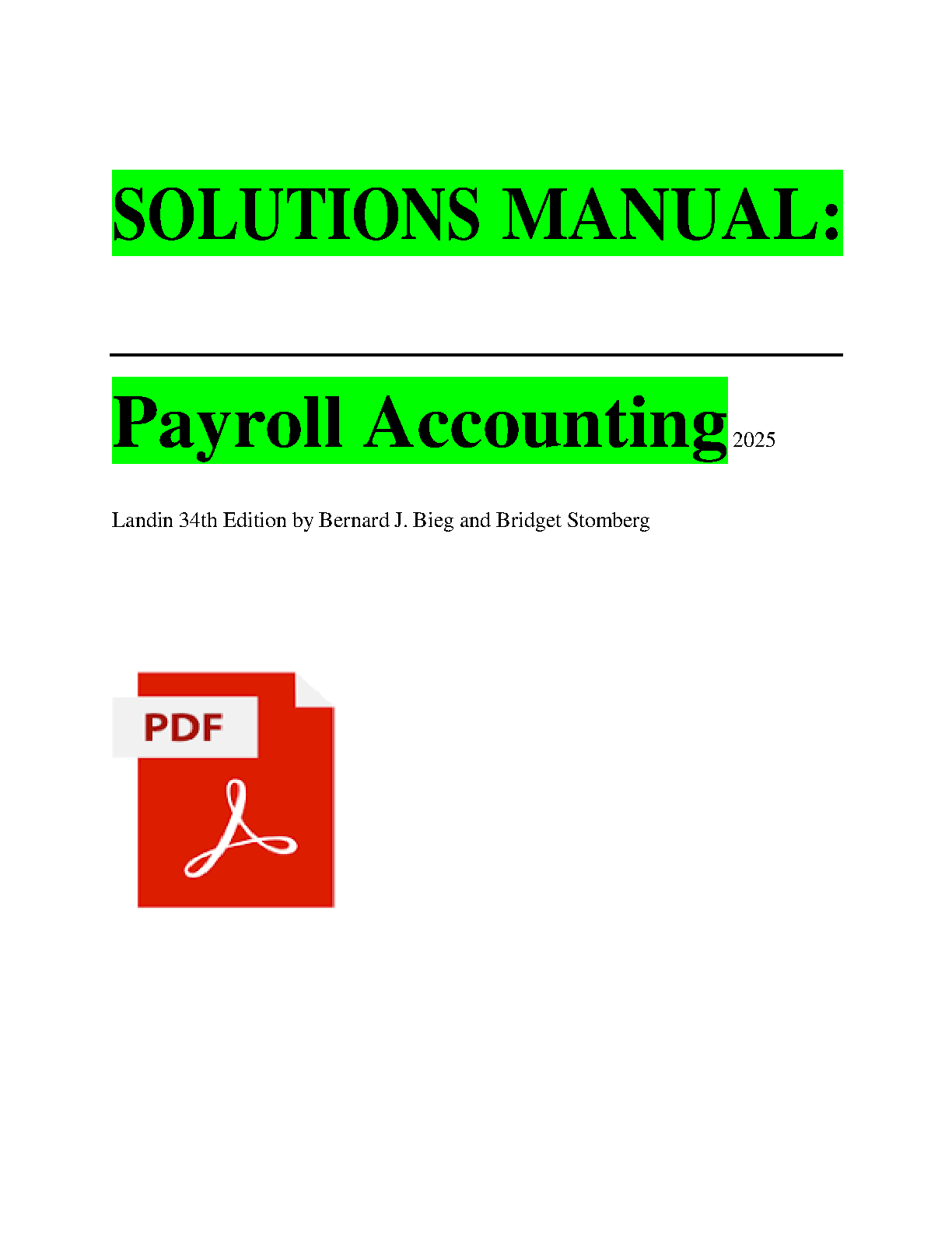 Solutions Manual for Payroll Accounting, 34th Edition (2025) by Bernard J. Bieg, Judith A. Toland, and Bridget Stomberg