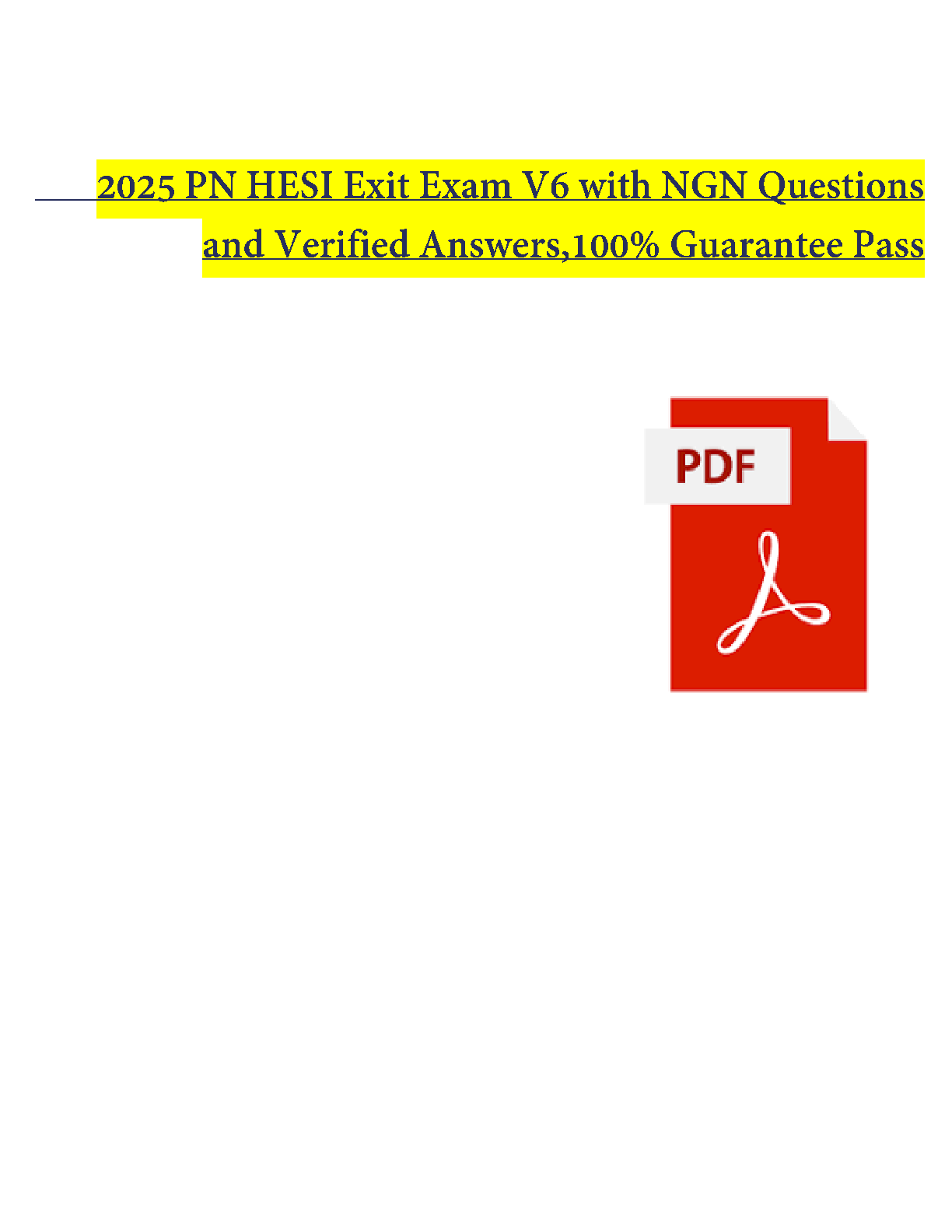 Latest 2025/2026 PN HESI Exit Exam V6 Study Guide | NGN Questions & Verified Answers for a Guaranteed Pass