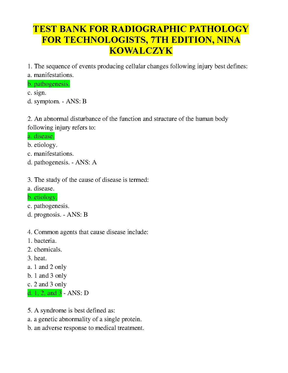 TEST BANK FOR RADIOGRAPHIC PATHOLOGY FOR TECHNOLOGISTS, 7TH EDITION, BY NINA KOWALCZYK. DOWNLOAD on www.hackedexams.com INSTANTLY.