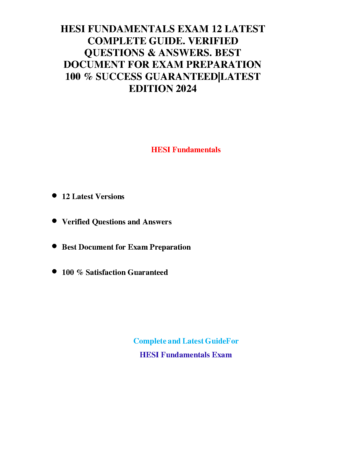 Ace your nursing school exams with our comprehensive HESI Fundamentals Exam Test Bank for the 2024 edition. This ultimate study guide features 12 of the most recent versions, packed with meticulously verified questions and detailed answers to ensure your success. Created as the definitive resource for your exam preparation, this guide covers all critical topics, boosting your confidence and helping you pass on your first try. Achieve guaranteed success with this complete and up-to-date HESI Fundamentals guide.