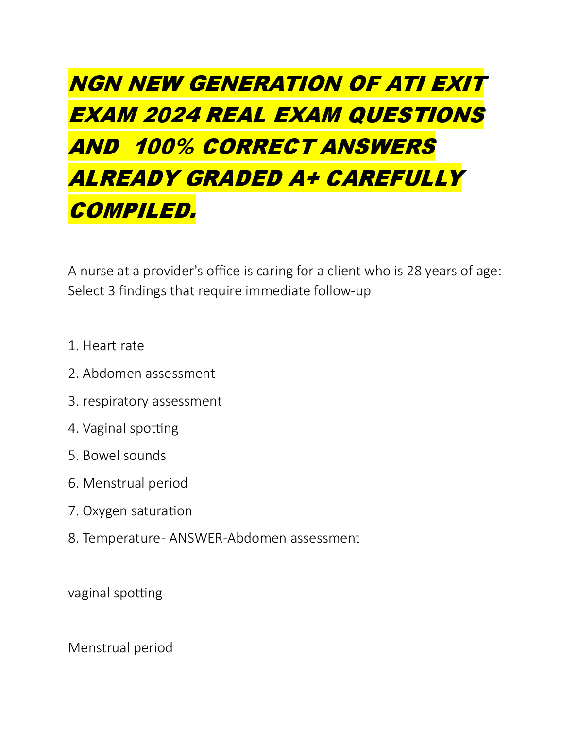 HackedExams is the website to download all resources for students who want to pass their exams on their first attempt. Our website offers all exam materials, including practice questions with answers, test banks, study guides, notes, summaries, and more for nursing, computer science, biology, psychology, law, and others. With resources from popular exam bodies like ATI, AQA, OCR, Edexcel, Comptia, Azure, and more, you'll easily find everything you need to get certified. Avoid resitting exams; trust in HackedExams.com to give you the resources to pass on your first attempt. Get access to exams from 2019 to 2023 and start your path to success today. "Avoid resits, get certified within days, and pass your exams on your first attempt."