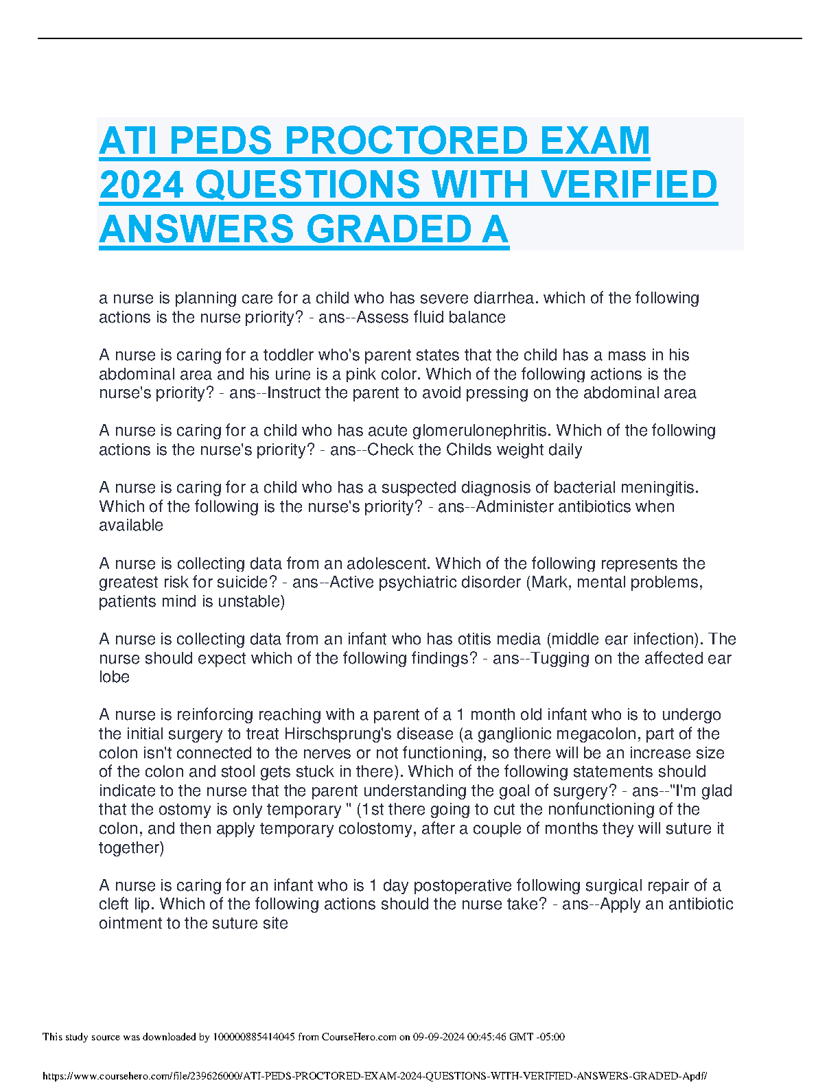 HackedExams is the website to download all resources for students who want to pass their exams on their first attempt. Our website offers all exam materials, including practice questions with answers, test banks, study guides, notes, summaries, and more for nursing, computer science, biology, psychology, law, and others. With resources from popular exam bodies like ATI, AQA, OCR, Edexcel, Comptia, Azure, and more, you'll easily find everything you need to get certified. Avoid resitting exams; trust in HackedExams.com to give you the resources to pass on your first attempt. Get access to exams from 2019 to 2023 and start your path to success today. "Avoid resits, get certified within days, and pass your exams on your first attempt."