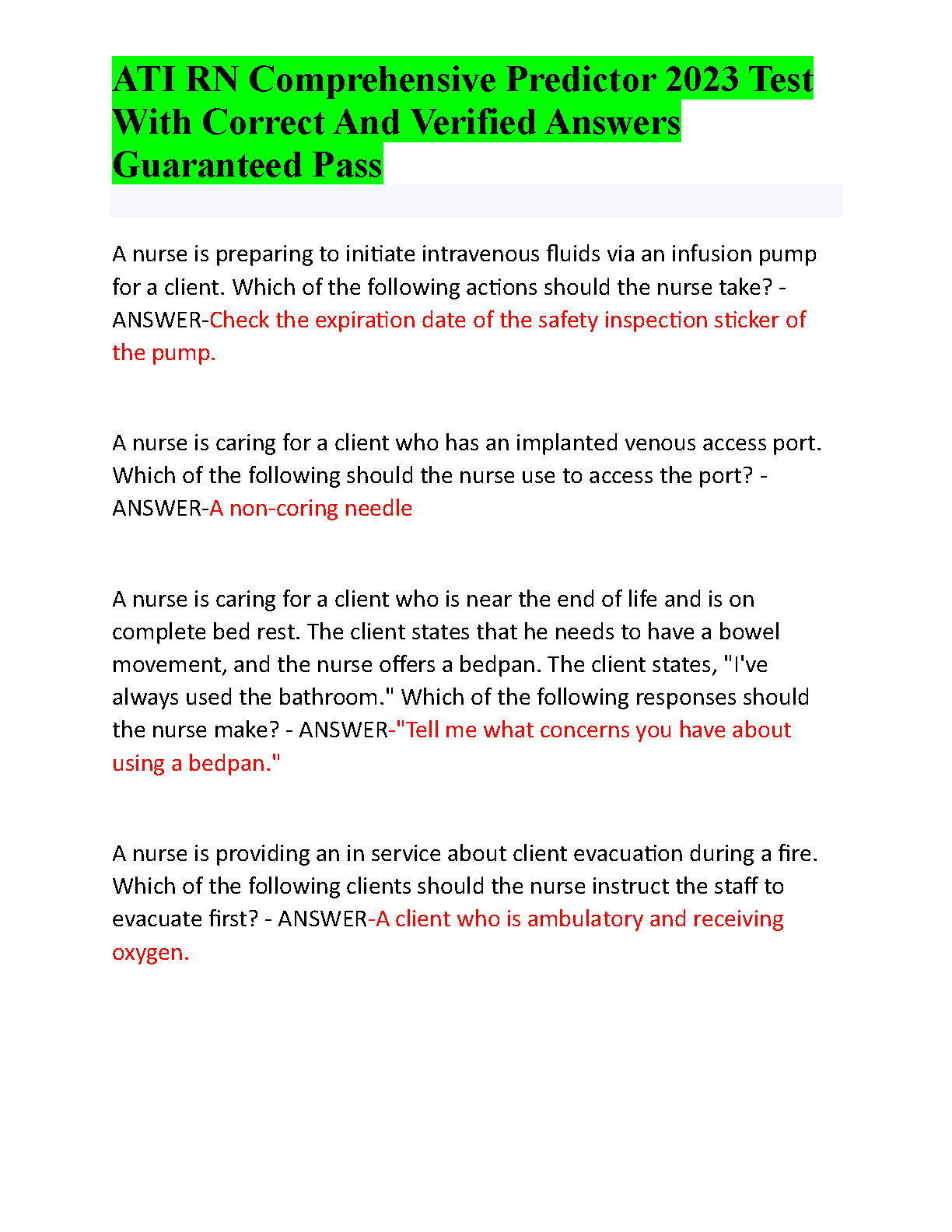 HackedExams is the website to download all resources for students who want to pass their exams on their first attempt. Our website offers all exam materials, including practice questions with answers, test banks, study guides, notes, summaries, and more for nursing, computer science, biology, psychology, law, and others. With resources from popular exam bodies like ATI, AQA, OCR, Edexcel, Comptia, Azure, and more, you'll easily find everything you need to get certified. Avoid resitting exams; trust in HackedExams.com to give you the resources to pass on your first attempt. Get access to exams from 2019 to 2023 and start your path to success today. "Avoid resits, get certified within days, and pass your exams on your first attempt."