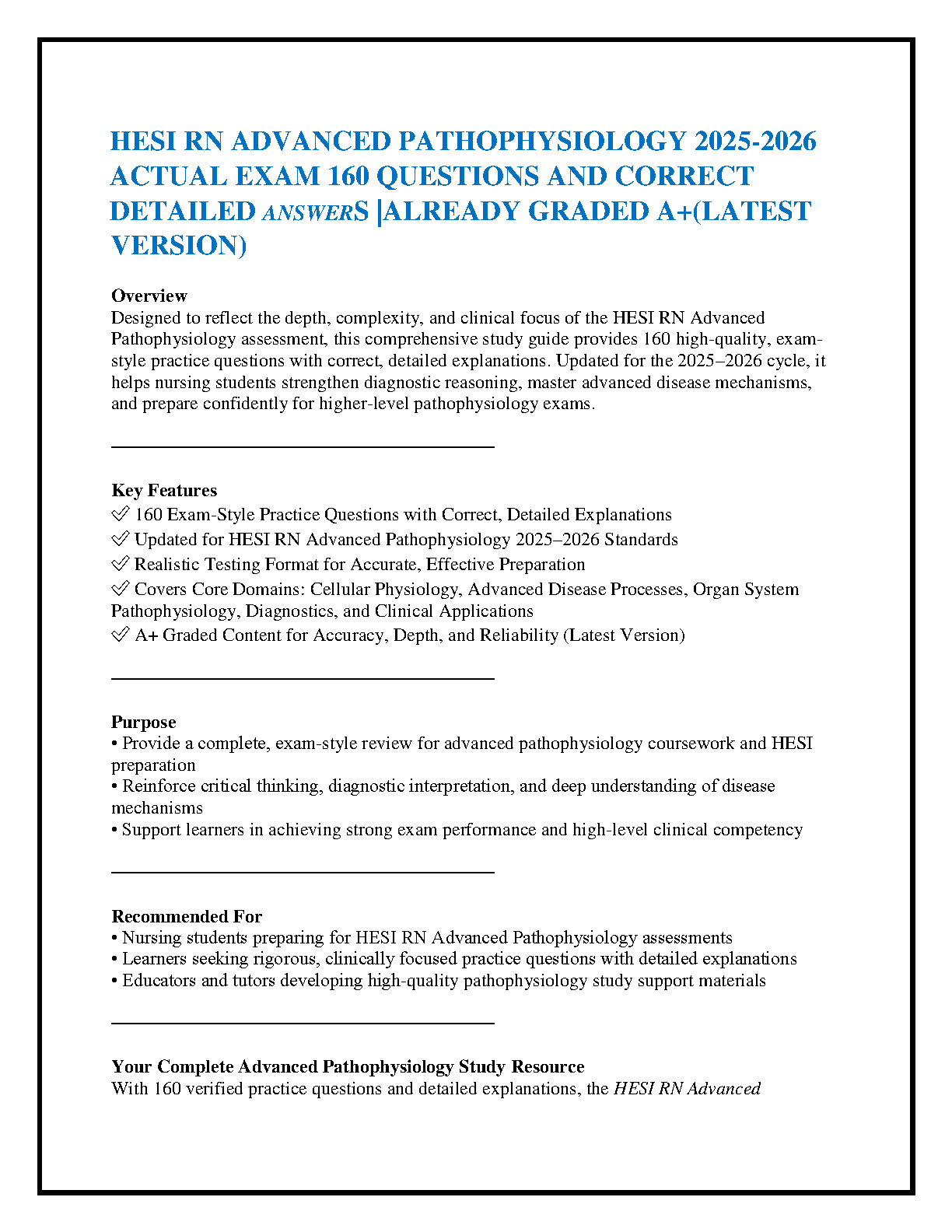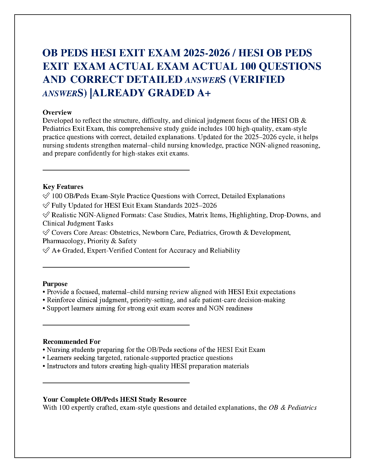 HackedExams is the website to download all resources for students who want to pass their exams on their first attempt. Our website offers all exam materials, including practice questions with answers, test banks, study guides, notes, summaries, and more for nursing, computer science, biology, psychology, law, and others. With resources from popular exam bodies like ATI, AQA, OCR, Edexcel, Comptia, Azure, and more, you'll easily find everything you need to get certified. Avoid resitting exams; trust in HackedExams.com to give you the resources to pass on your first attempt. Get access to exams from 2019 to 2023 and start your path to success today. "Avoid resits, get certified within days, and pass your exams on your first attempt."