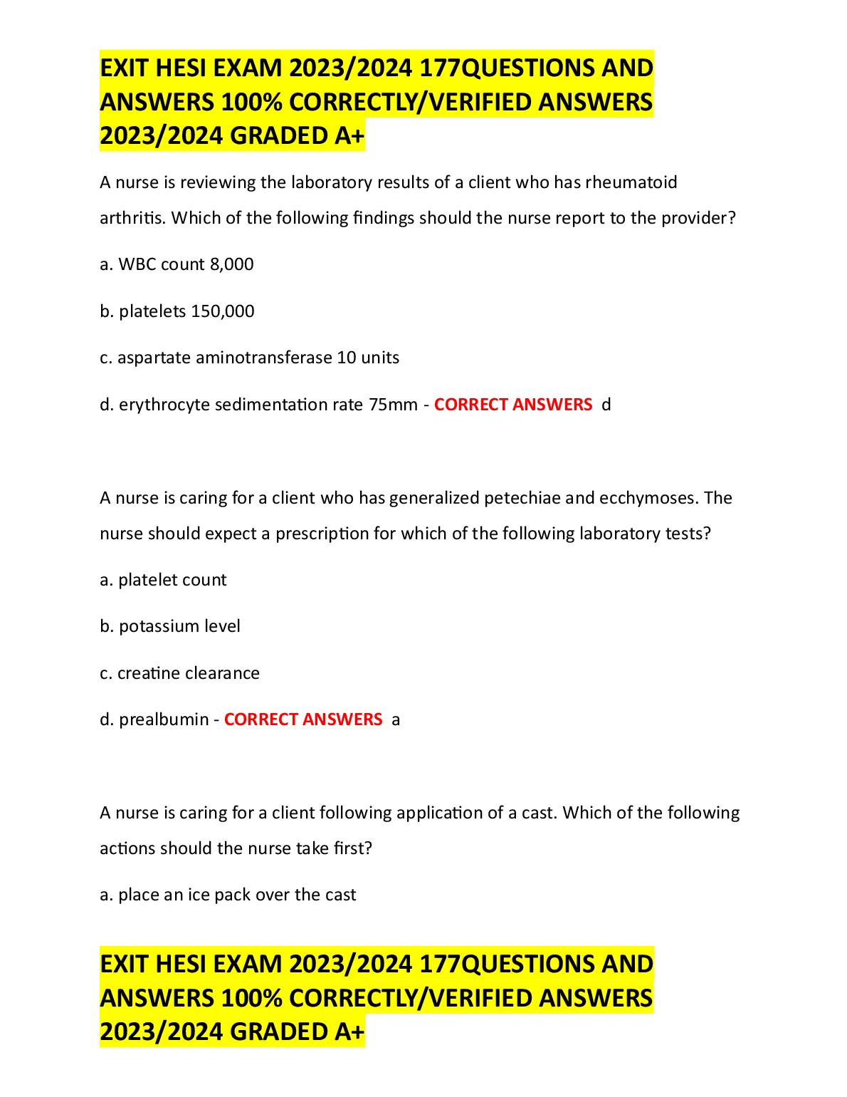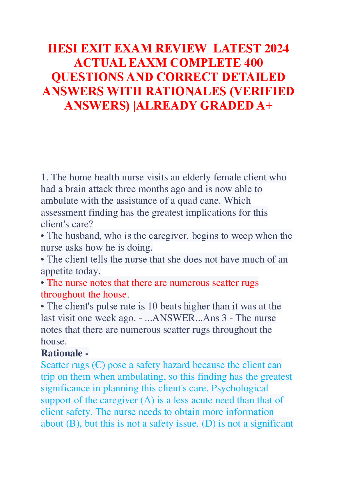 HackedExams is the website to download all resources for students who want to pass their exams on their first attempt. Our website offers all exam materials, including practice questions with answers, test banks, study guides, notes, summaries, and more for nursing, computer science, biology, psychology, law, and others. With resources from popular exam bodies like ATI, AQA, OCR, Edexcel, Comptia, Azure, and more, you'll easily find everything you need to get certified. Avoid resitting exams; trust in HackedExams.com to give you the resources to pass on your first attempt. Get access to exams from 2019 to 2023 and start your path to success today. "Avoid resits, get certified within days, and pass your exams on your first attempt."