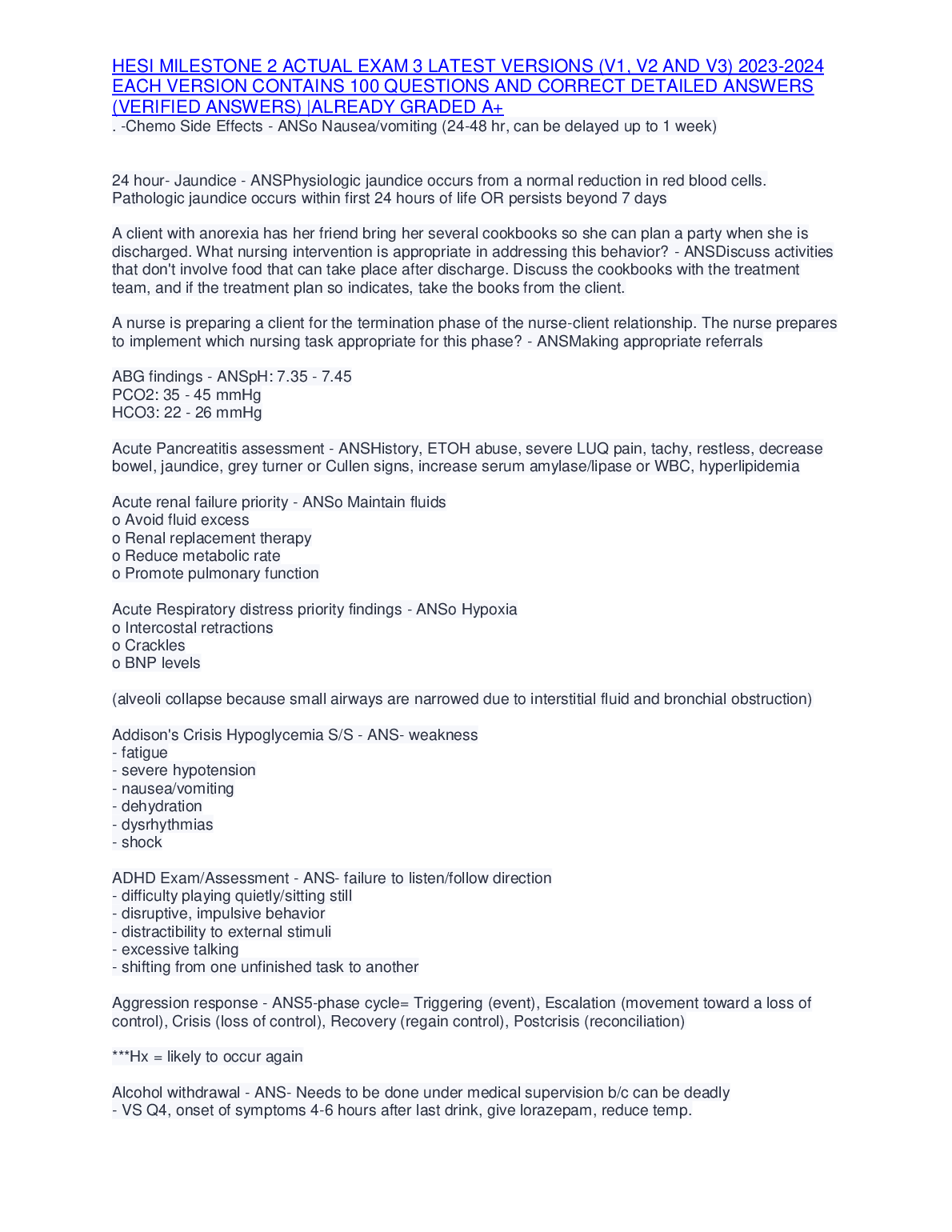 HackedExams is the website to download all resources for students who want to pass their exams on their first attempt. Our website offers all exam materials, including practice questions with answers, test banks, study guides, notes, summaries, and more for nursing, computer science, biology, psychology, law, and others. With resources from popular exam bodies like ATI, AQA, OCR, Edexcel, Comptia, Azure, and more, you'll easily find everything you need to get certified. Avoid resitting exams; trust in HackedExams.com to give you the resources to pass on your first attempt. Get access to exams from 2019 to 2023 and start your path to success today. "Avoid resits, get certified within days, and pass your exams on your first attempt."