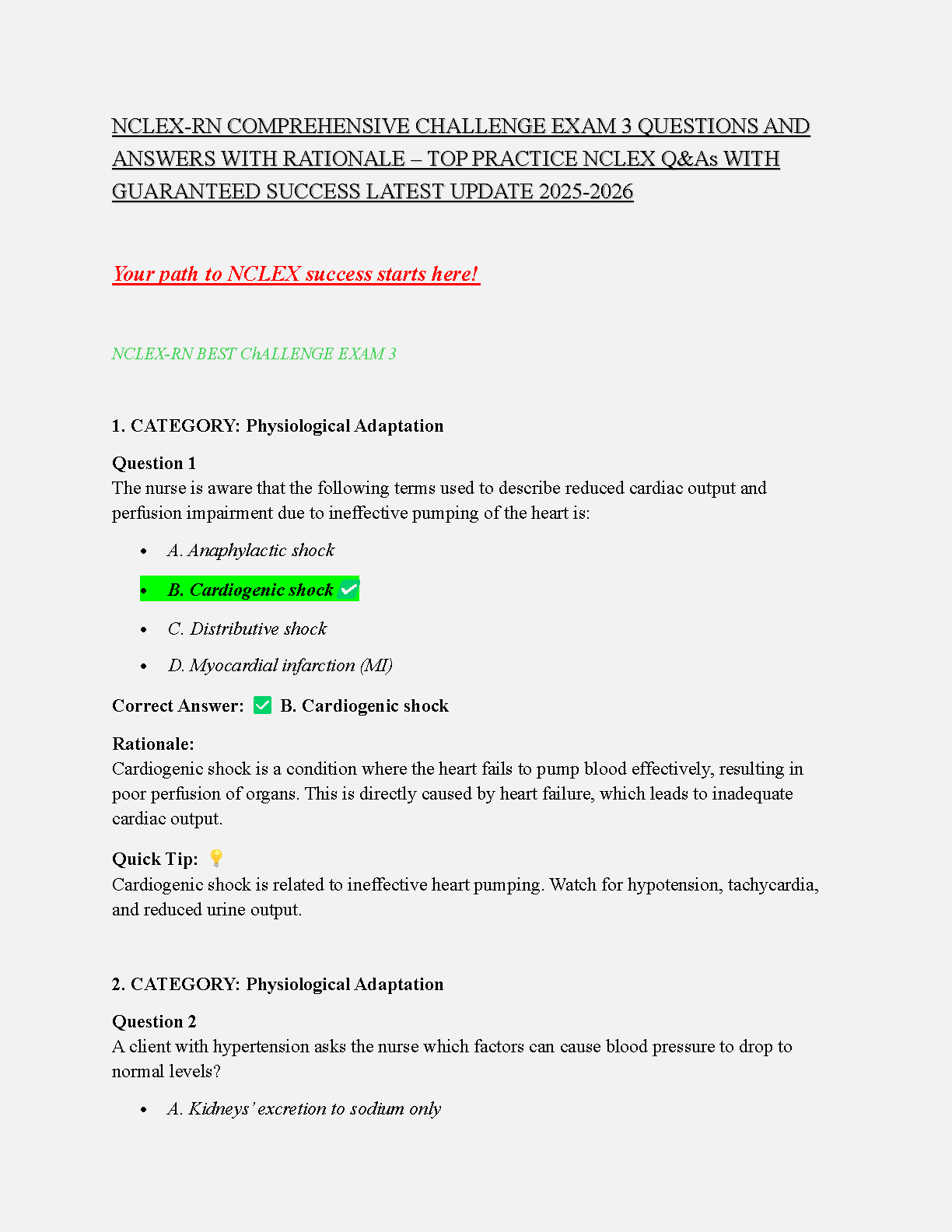 HackedExams is the website to download all resources for students who want to pass their exams on their first attempt. Our website offers all exam materials, including practice questions with answers, test banks, study guides, notes, summaries, and more for nursing, computer science, biology, psychology, law, and others. With resources from popular exam bodies like ATI, AQA, OCR, Edexcel, Comptia, Azure, and more, you'll easily find everything you need to get certified. Avoid resitting exams; trust in HackedExams.com to give you the resources to pass on your first attempt. Get access to exams from 2019 to 2023 and start your path to success today. "Avoid resits, get certified within days, and pass your exams on your first attempt."