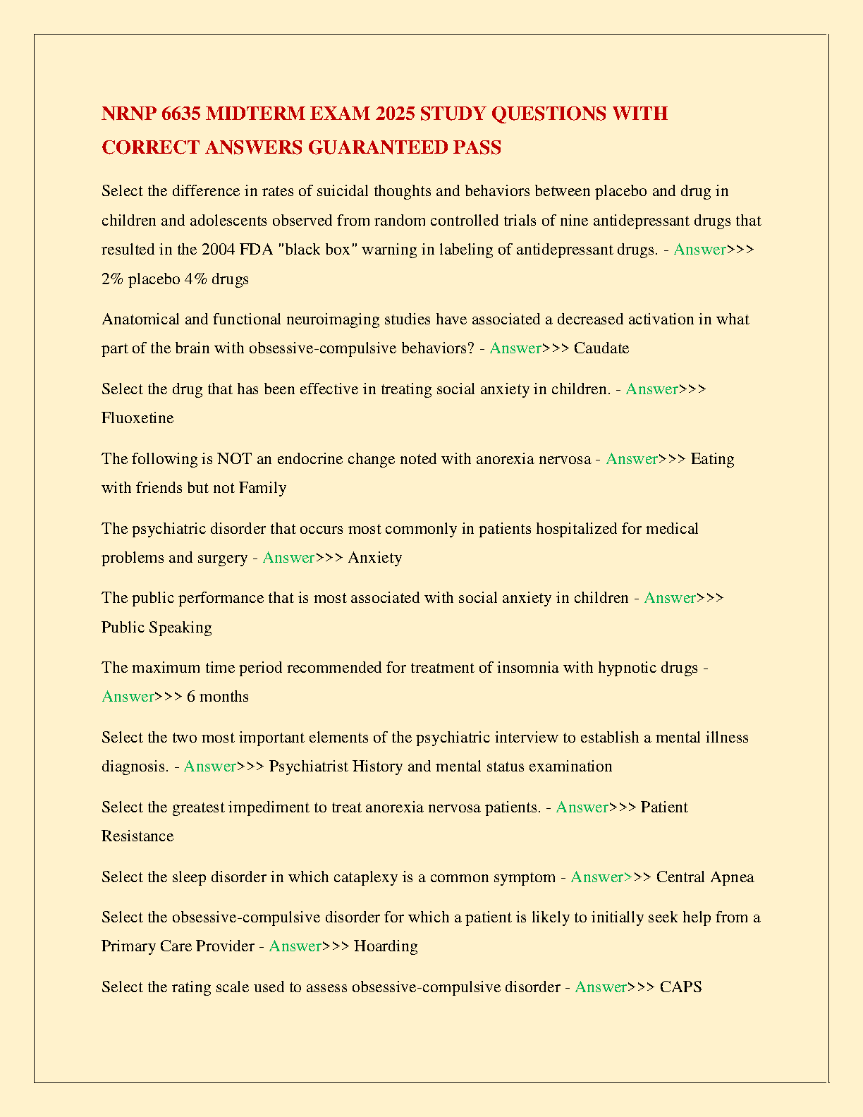 HackedExams is the website to download all resources for students who want to pass their exams on their first attempt. Our website offers all exam materials, including practice questions with answers, test banks, study guides, notes, summaries, and more for nursing, computer science, biology, psychology, law, and others. With resources from popular exam bodies like ATI, AQA, OCR, Edexcel, Comptia, Azure, and more, you'll easily find everything you need to get certified. Avoid resitting exams; trust in HackedExams.com to give you the resources to pass on your first attempt. Get access to exams from 2019 to 2023 and start your path to success today. "Avoid resits, get certified within days, and pass your exams on your first attempt."