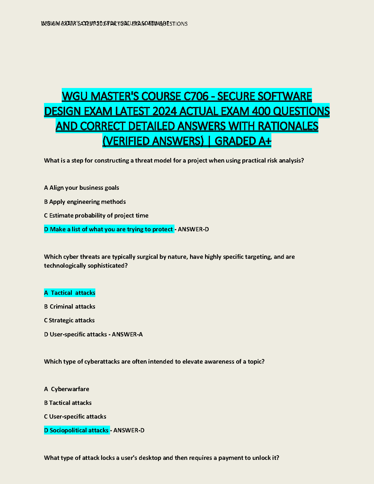HackedExams is the website to download all resources for students who want to pass their exams on their first attempt. Our website offers all exam materials, including practice questions with answers, test banks, study guides, notes, summaries, and more for nursing, computer science, biology, psychology, law, and others. With resources from popular exam bodies like ATI, AQA, OCR, Edexcel, Comptia, Azure, and more, you'll easily find everything you need to get certified. Avoid resitting exams; trust in HackedExams.com to give you the resources to pass on your first attempt. Get access to exams from 2019 to 2023 and start your path to success today. "Avoid resits, get certified within days, and pass your exams on your first attempt."