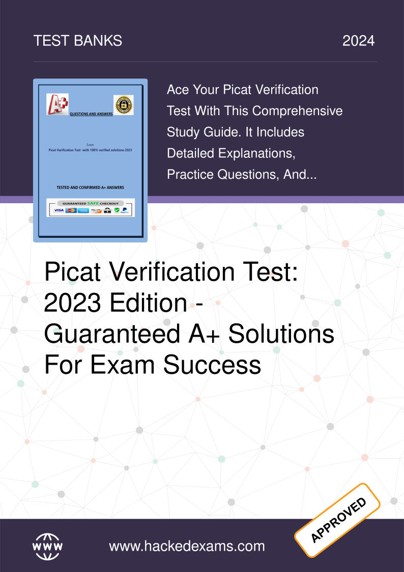 HackedExams is the website to download all resources for students who want to pass their exams on their first attempt. Our website offers all exam materials, including practice questions with answers, test banks, study guides, notes, summaries, and more for nursing, computer science, biology, psychology, law, and others. With resources from popular exam bodies like ATI, AQA, OCR, Edexcel, Comptia, Azure, and more, you'll easily find everything you need to get certified. Avoid resitting exams; trust in HackedExams.com to give you the resources to pass on your first attempt. Get access to exams from 2019 to 2023 and start your path to success today. "Avoid resits, get certified within days, and pass your exams on your first attempt."