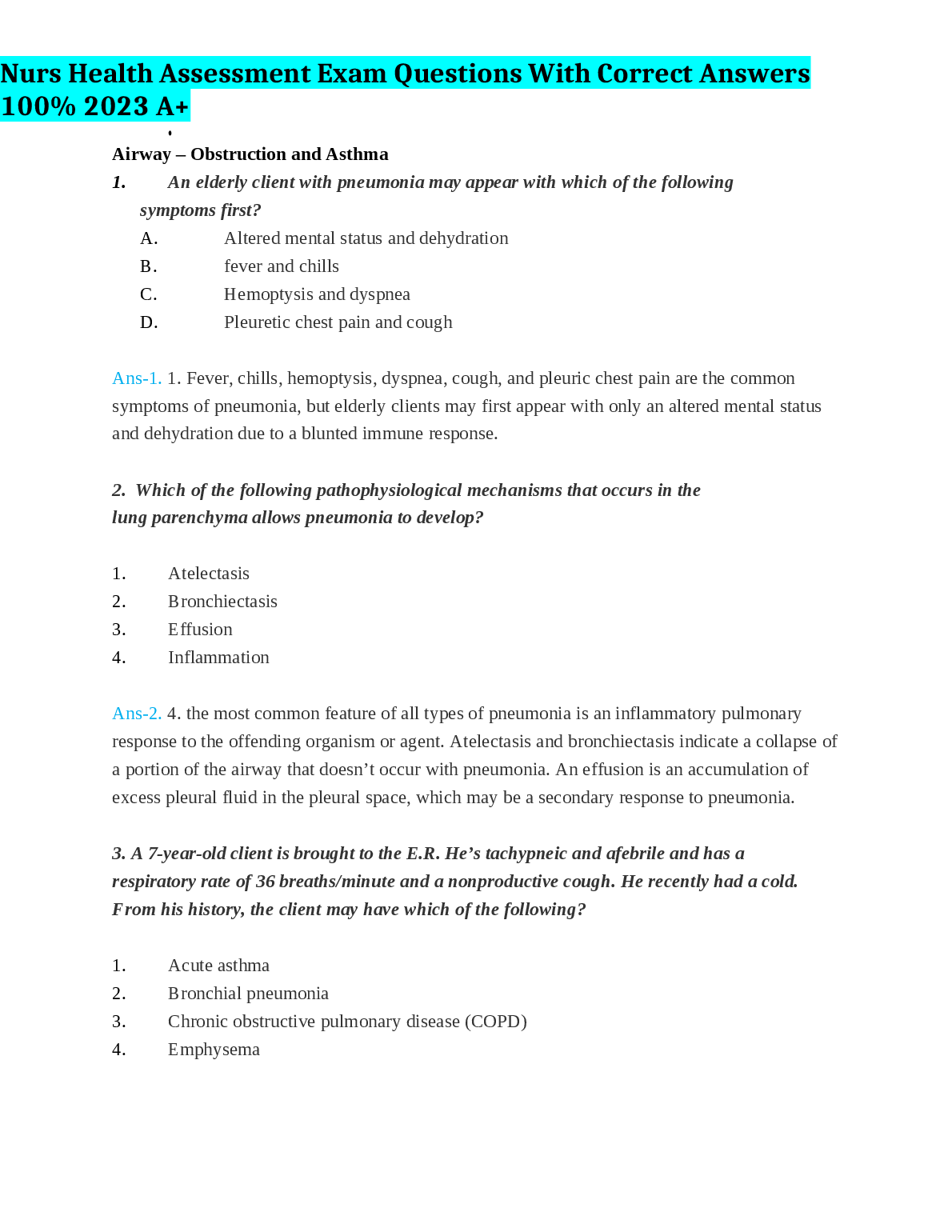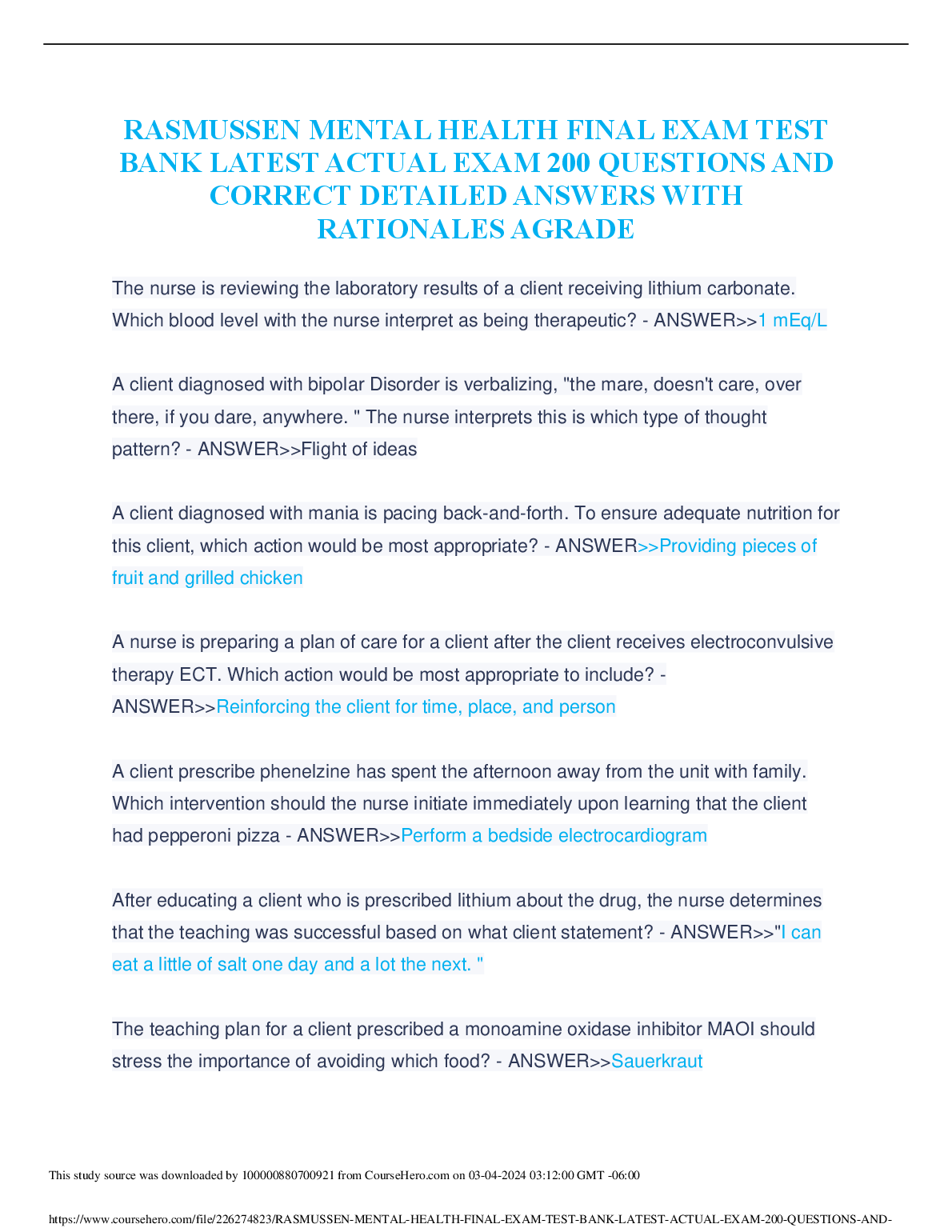 HackedExams is the website to download all resources for students who want to pass their exams on their first attempt. Our website offers all exam materials, including practice questions with answers, test banks, study guides, notes, summaries, and more for nursing, computer science, biology, psychology, law, and others. With resources from popular exam bodies like ATI, AQA, OCR, Edexcel, Comptia, Azure, and more, you'll easily find everything you need to get certified. Avoid resitting exams; trust in HackedExams.com to give you the resources to pass on your first attempt. Get access to exams from 2019 to 2023 and start your path to success today. "Avoid resits, get certified within days, and pass your exams on your first attempt."
