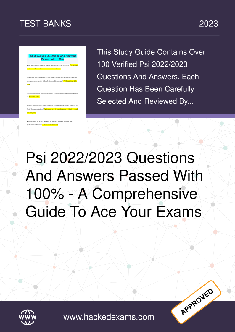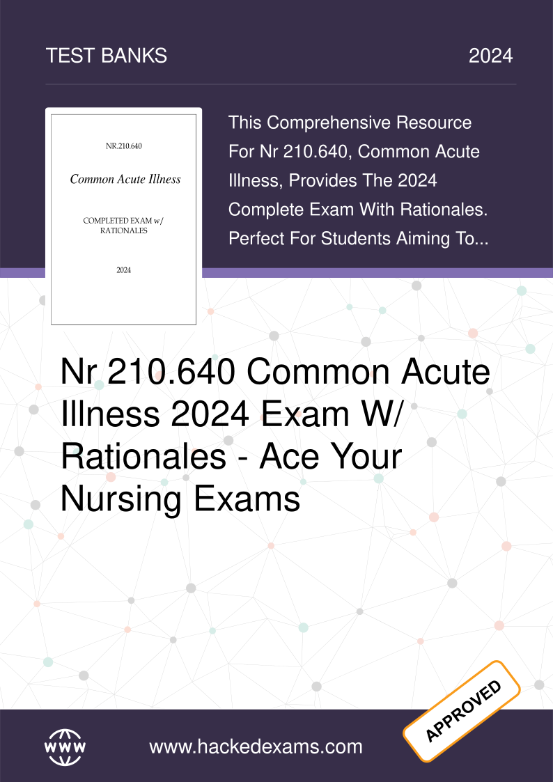 HackedExams is the website to download all resources for students who want to pass their exams on their first attempt. Our website offers all exam materials, including practice questions with answers, test banks, study guides, notes, summaries, and more for nursing, computer science, biology, psychology, law, and others. With resources from popular exam bodies like ATI, AQA, OCR, Edexcel, Comptia, Azure, and more, you'll easily find everything you need to get certified. Avoid resitting exams; trust in HackedExams.com to give you the resources to pass on your first attempt. Get access to exams from 2019 to 2023 and start your path to success today. "Avoid resits, get certified within days, and pass your exams on your first attempt."