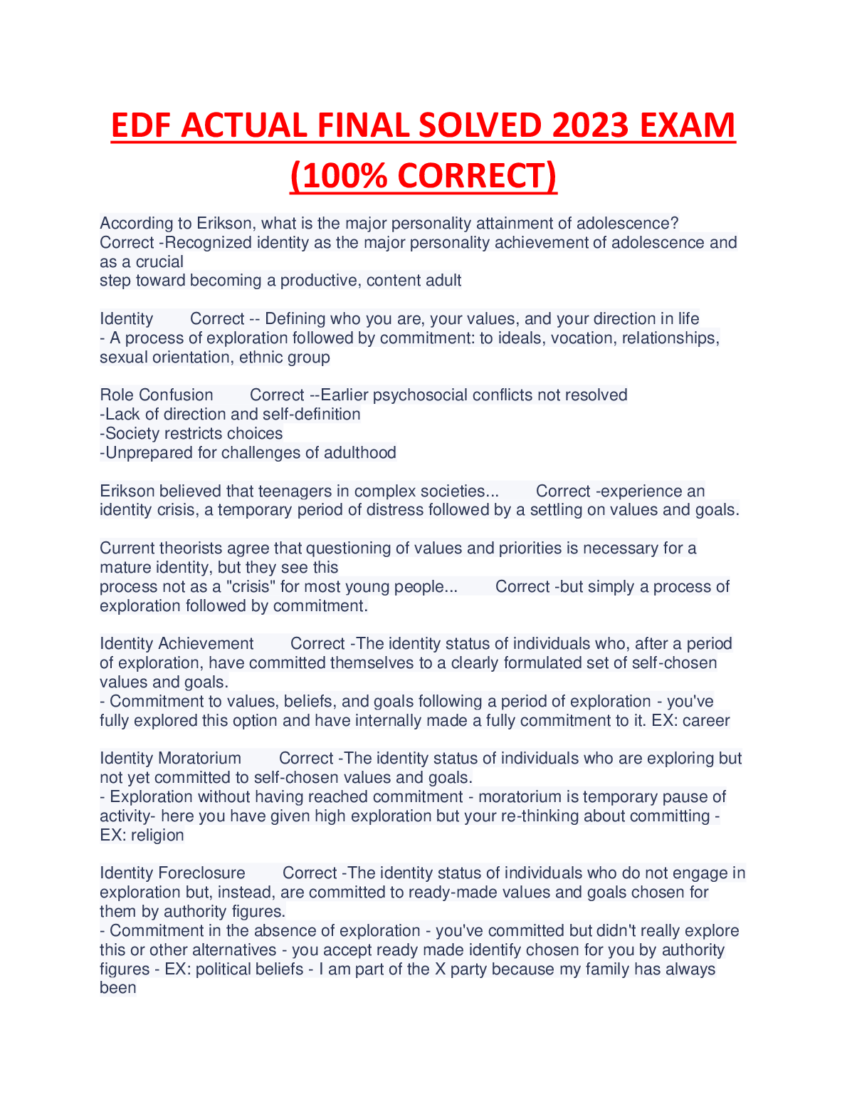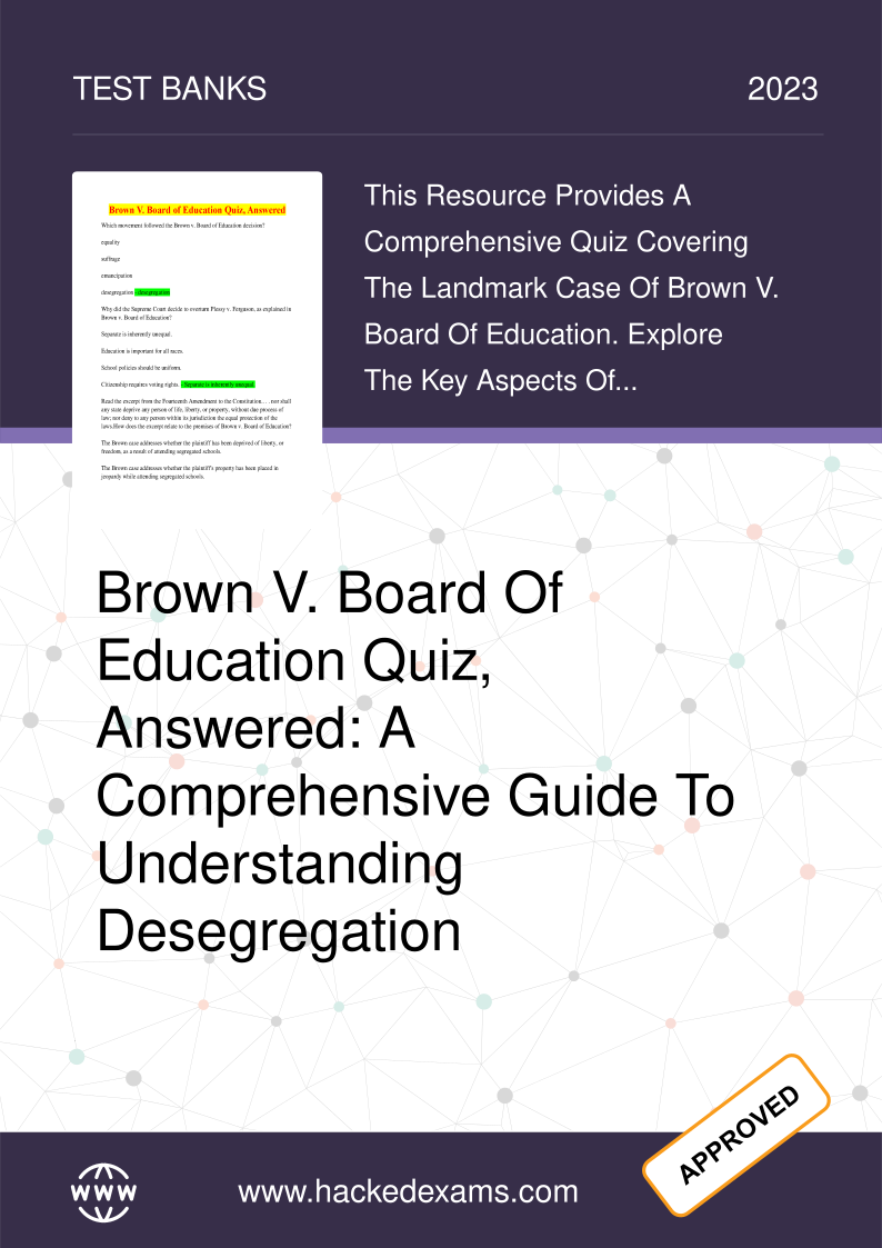 HackedExams is the website to download all resources for students who want to pass their exams on their first attempt. Our website offers all exam materials, including practice questions with answers, test banks, study guides, notes, summaries, and more for nursing, computer science, biology, psychology, law, and others. With resources from popular exam bodies like ATI, AQA, OCR, Edexcel, Comptia, Azure, and more, you'll easily find everything you need to get certified. Avoid resitting exams; trust in HackedExams.com to give you the resources to pass on your first attempt. Get access to exams from 2019 to 2023 and start your path to success today. "Avoid resits, get certified within days, and pass your exams on your first attempt."
