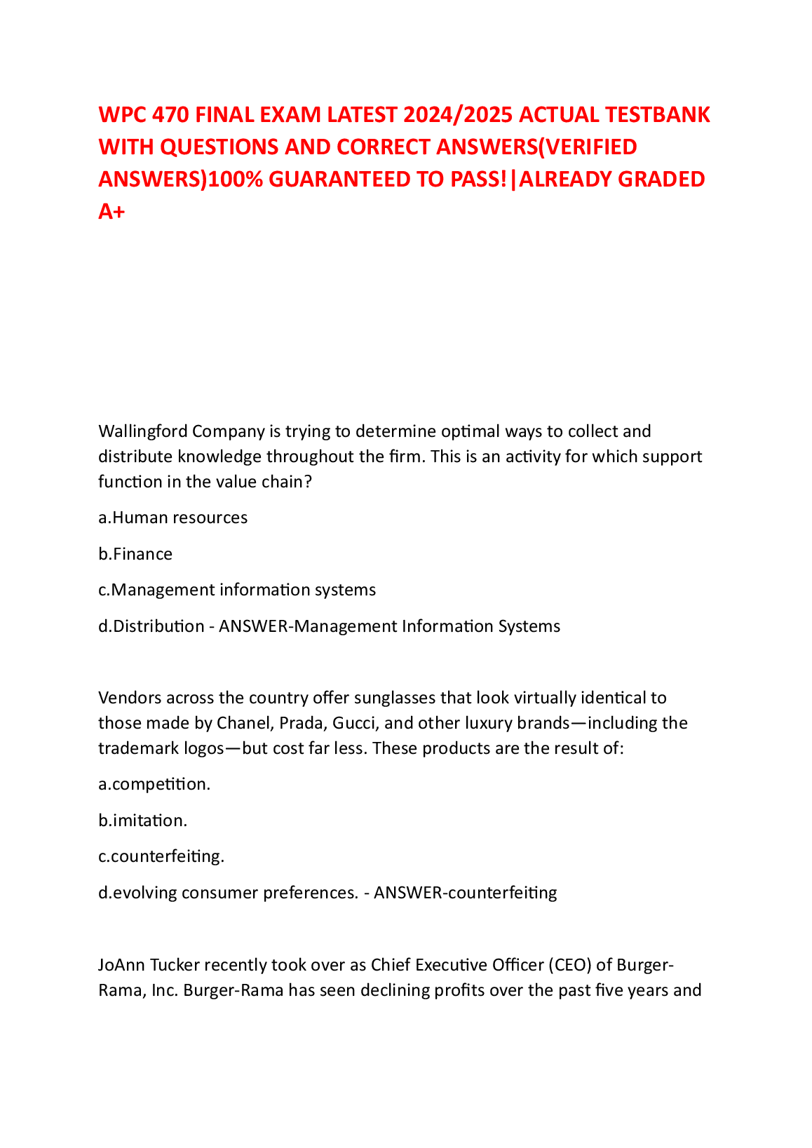 HackedExams is the website to download all resources for students who want to pass their exams on their first attempt. Our website offers all exam materials, including practice questions with answers, test banks, study guides, notes, summaries, and more for nursing, computer science, biology, psychology, law, and others. With resources from popular exam bodies like ATI, AQA, OCR, Edexcel, Comptia, Azure, and more, you'll easily find everything you need to get certified. Avoid resitting exams; trust in HackedExams.com to give you the resources to pass on your first attempt. Get access to exams from 2019 to 2023 and start your path to success today. "Avoid resits, get certified within days, and pass your exams on your first attempt."