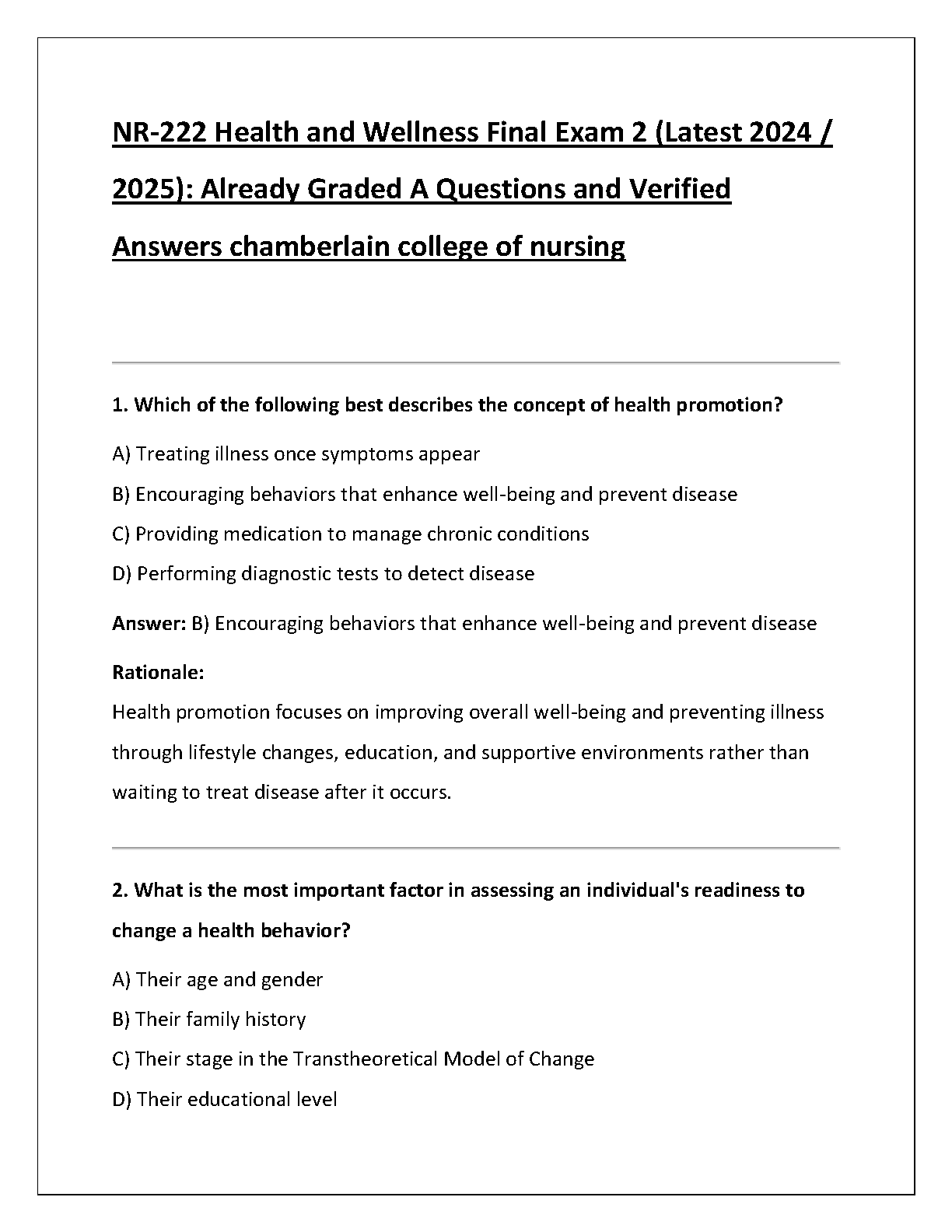 HackedExams is the website to download all resources for students who want to pass their exams on their first attempt. Our website offers all exam materials, including practice questions with answers, test banks, study guides, notes, summaries, and more for nursing, computer science, biology, psychology, law, and others. With resources from popular exam bodies like ATI, AQA, OCR, Edexcel, Comptia, Azure, and more, you'll easily find everything you need to get certified. Avoid resitting exams; trust in HackedExams.com to give you the resources to pass on your first attempt. Get access to exams from 2019 to 2023 and start your path to success today. "Avoid resits, get certified within days, and pass your exams on your first attempt."