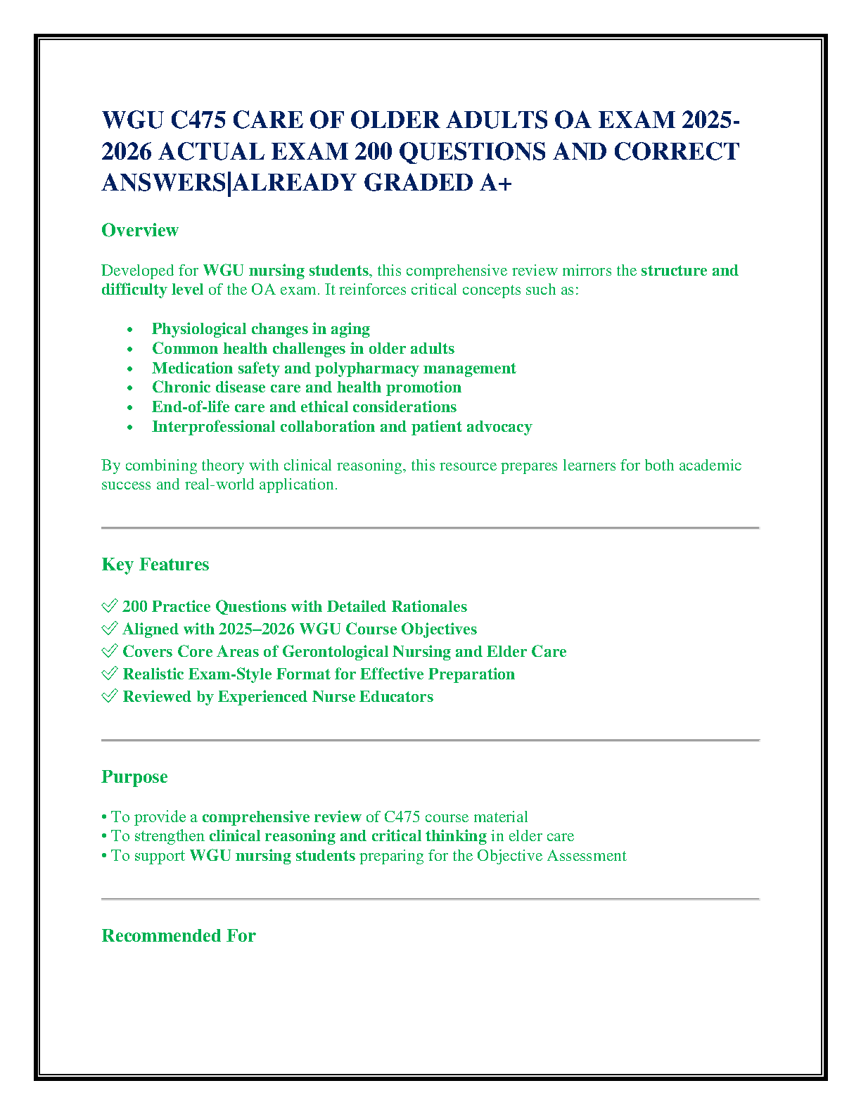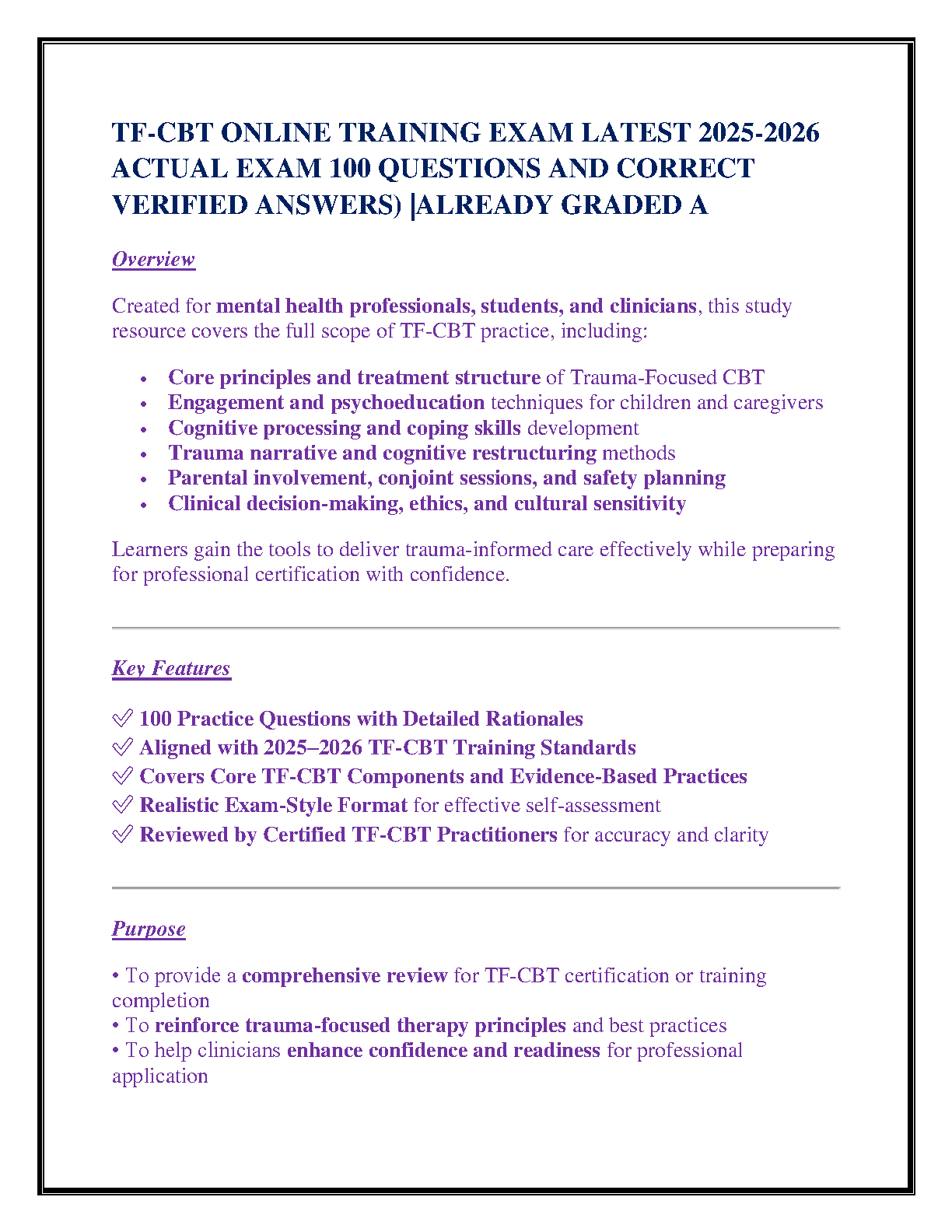 HackedExams is the website to download all resources for students who want to pass their exams on their first attempt. Our website offers all exam materials, including practice questions with answers, test banks, study guides, notes, summaries, and more for nursing, computer science, biology, psychology, law, and others. With resources from popular exam bodies like ATI, AQA, OCR, Edexcel, Comptia, Azure, and more, you'll easily find everything you need to get certified. Avoid resitting exams; trust in HackedExams.com to give you the resources to pass on your first attempt. Get access to exams from 2019 to 2023 and start your path to success today. "Avoid resits, get certified within days, and pass your exams on your first attempt."