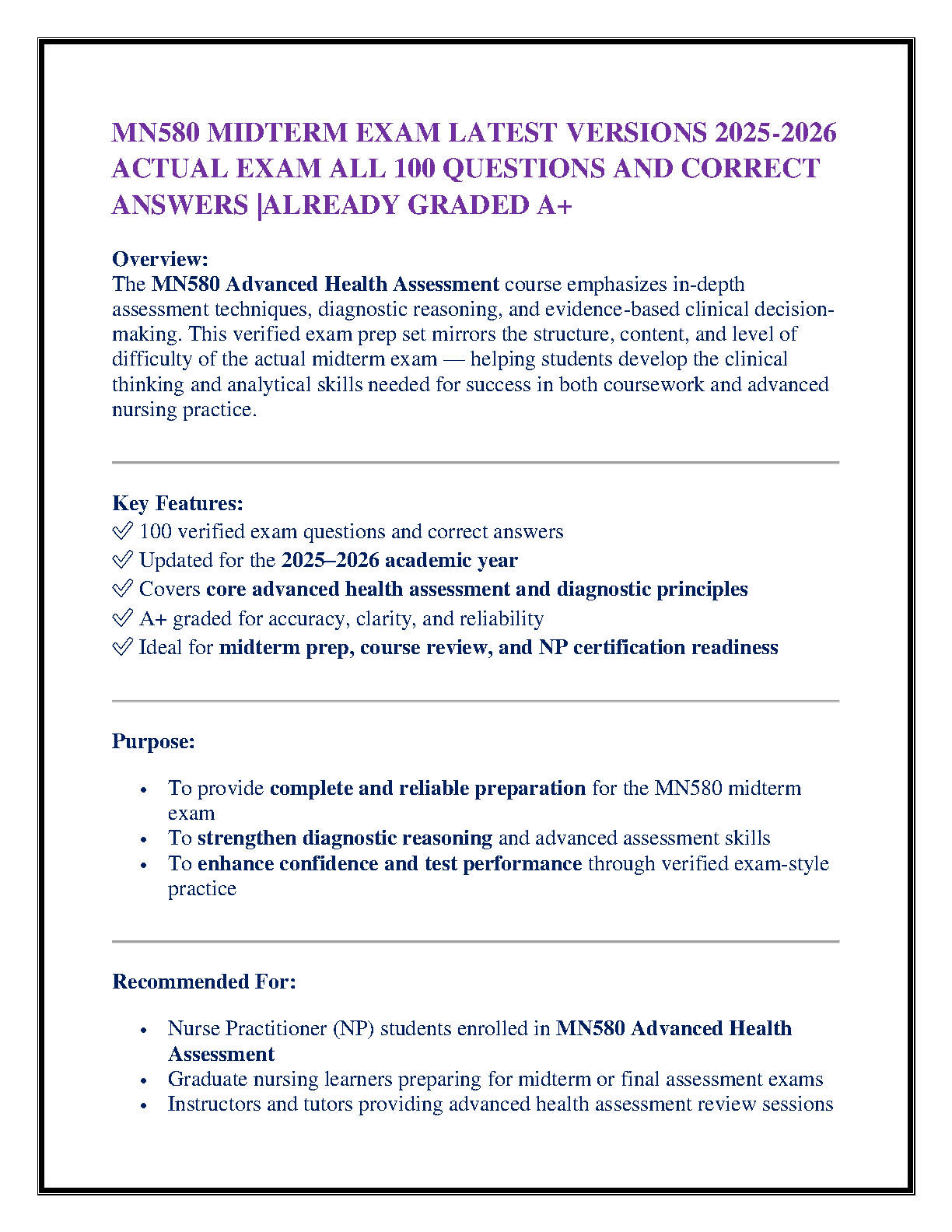 HackedExams is the website to download all resources for students who want to pass their exams on their first attempt. Our website offers all exam materials, including practice questions with answers, test banks, study guides, notes, summaries, and more for nursing, computer science, biology, psychology, law, and others. With resources from popular exam bodies like ATI, AQA, OCR, Edexcel, Comptia, Azure, and more, you'll easily find everything you need to get certified. Avoid resitting exams; trust in HackedExams.com to give you the resources to pass on your first attempt. Get access to exams from 2019 to 2023 and start your path to success today. "Avoid resits, get certified within days, and pass your exams on your first attempt."