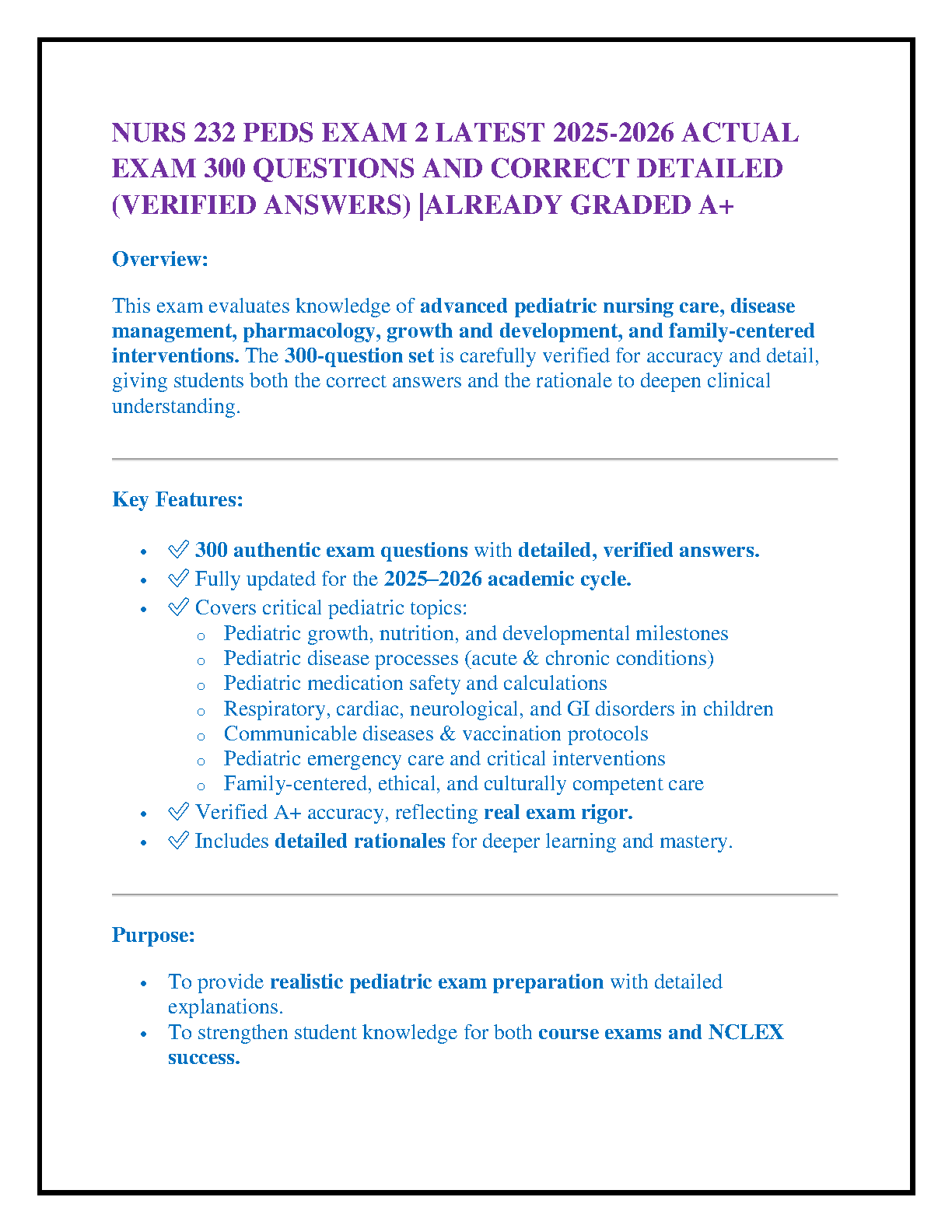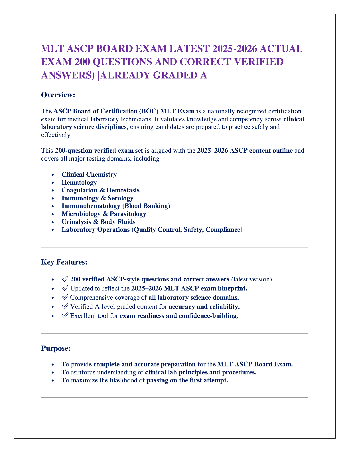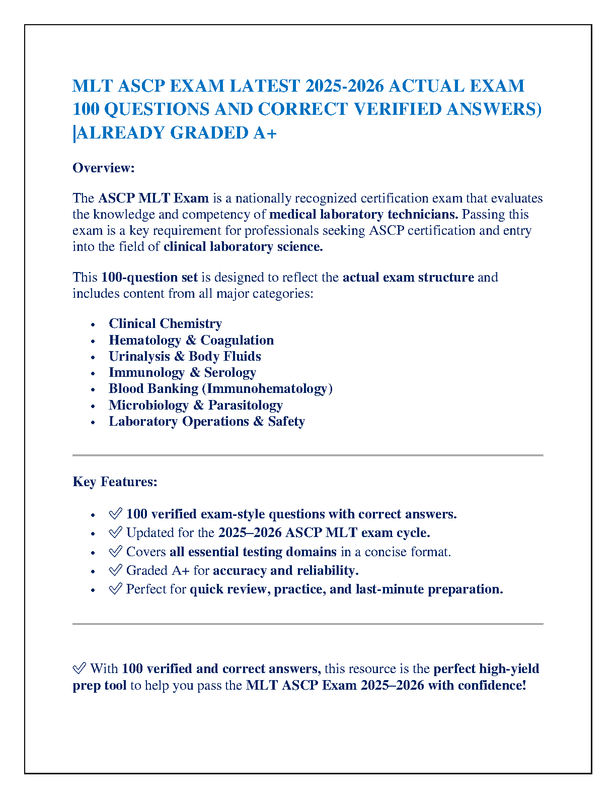 HackedExams is the website to download all resources for students who want to pass their exams on their first attempt. Our website offers all exam materials, including practice questions with answers, test banks, study guides, notes, summaries, and more for nursing, computer science, biology, psychology, law, and others. With resources from popular exam bodies like ATI, AQA, OCR, Edexcel, Comptia, Azure, and more, you'll easily find everything you need to get certified. Avoid resitting exams; trust in HackedExams.com to give you the resources to pass on your first attempt. Get access to exams from 2019 to 2023 and start your path to success today. "Avoid resits, get certified within days, and pass your exams on your first attempt."