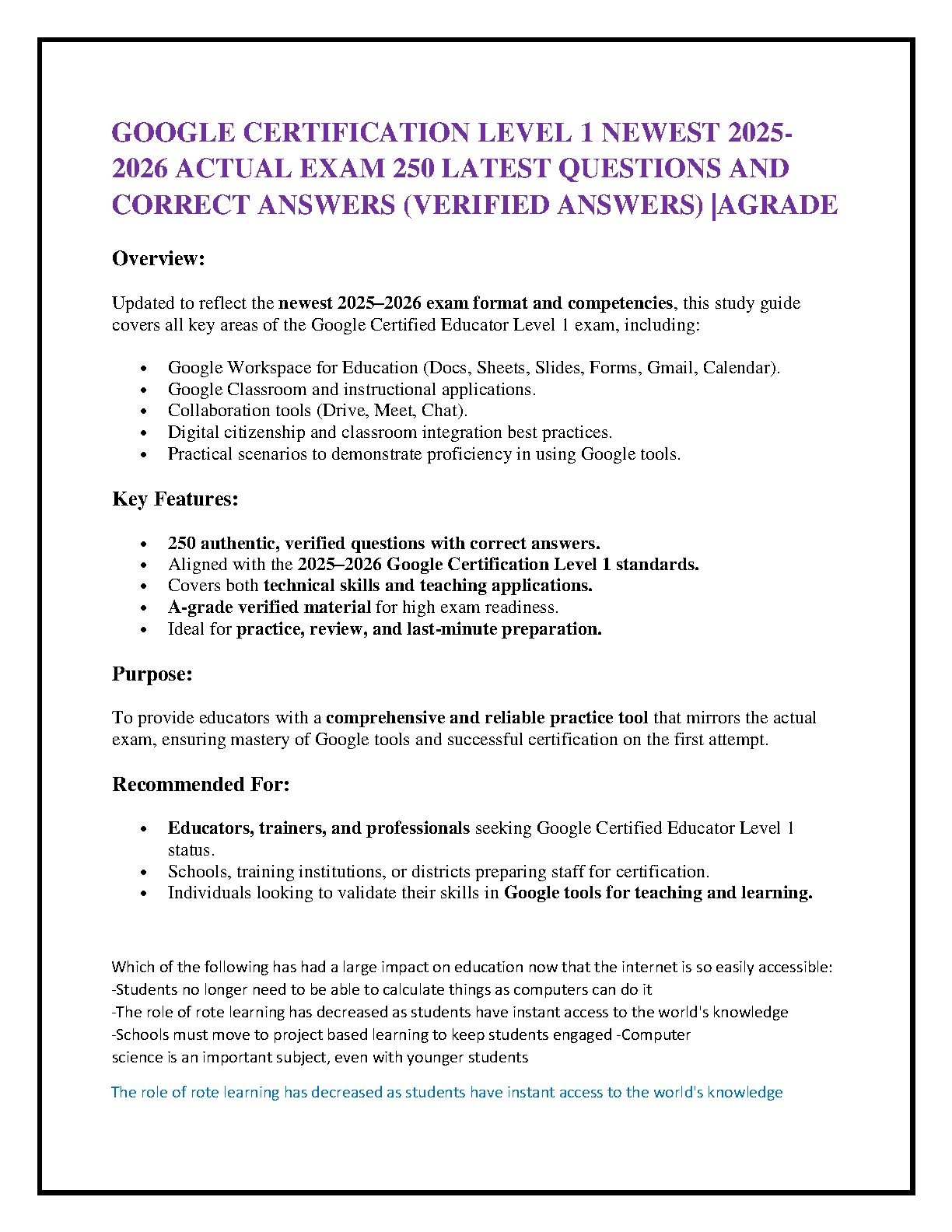 HackedExams is the website to download all resources for students who want to pass their exams on their first attempt. Our website offers all exam materials, including practice questions with answers, test banks, study guides, notes, summaries, and more for nursing, computer science, biology, psychology, law, and others. With resources from popular exam bodies like ATI, AQA, OCR, Edexcel, Comptia, Azure, and more, you'll easily find everything you need to get certified. Avoid resitting exams; trust in HackedExams.com to give you the resources to pass on your first attempt. Get access to exams from 2019 to 2023 and start your path to success today. "Avoid resits, get certified within days, and pass your exams on your first attempt."