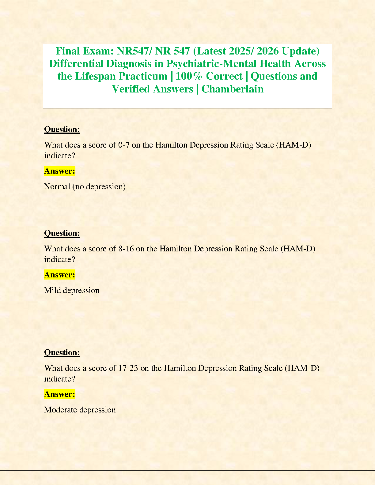 HackedExams is the website to download all resources for students who want to pass their exams on their first attempt. Our website offers all exam materials, including practice questions with answers, test banks, study guides, notes, summaries, and more for nursing, computer science, biology, psychology, law, and others. With resources from popular exam bodies like ATI, AQA, OCR, Edexcel, Comptia, Azure, and more, you'll easily find everything you need to get certified. Avoid resitting exams; trust in HackedExams.com to give you the resources to pass on your first attempt. Get access to exams from 2019 to 2023 and start your path to success today. "Avoid resits, get certified within days, and pass your exams on your first attempt."