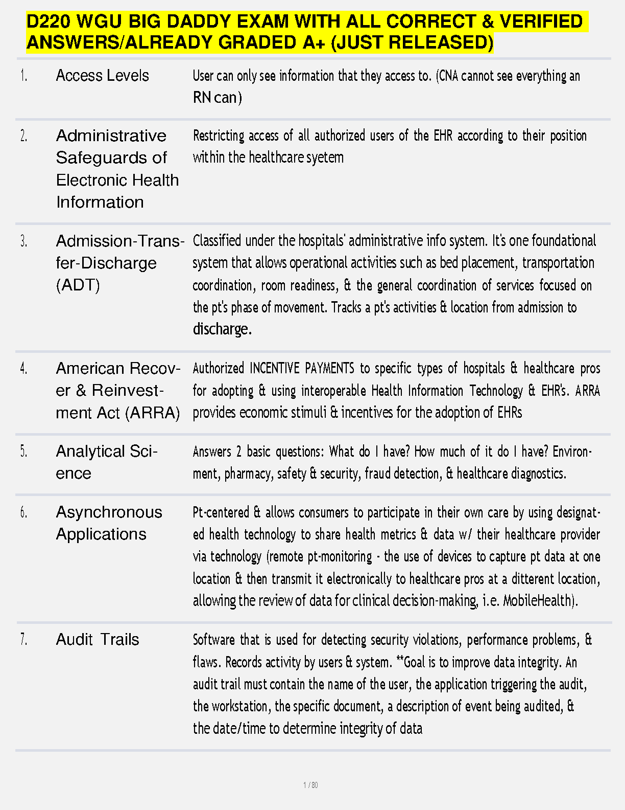 HackedExams is the website to download all resources for students who want to pass their exams on their first attempt. Our website offers all exam materials, including practice questions with answers, test banks, study guides, notes, summaries, and more for nursing, computer science, biology, psychology, law, and others. With resources from popular exam bodies like ATI, AQA, OCR, Edexcel, Comptia, Azure, and more, you'll easily find everything you need to get certified. Avoid resitting exams; trust in HackedExams.com to give you the resources to pass on your first attempt. Get access to exams from 2019 to 2023 and start your path to success today. "Avoid resits, get certified within days, and pass your exams on your first attempt."