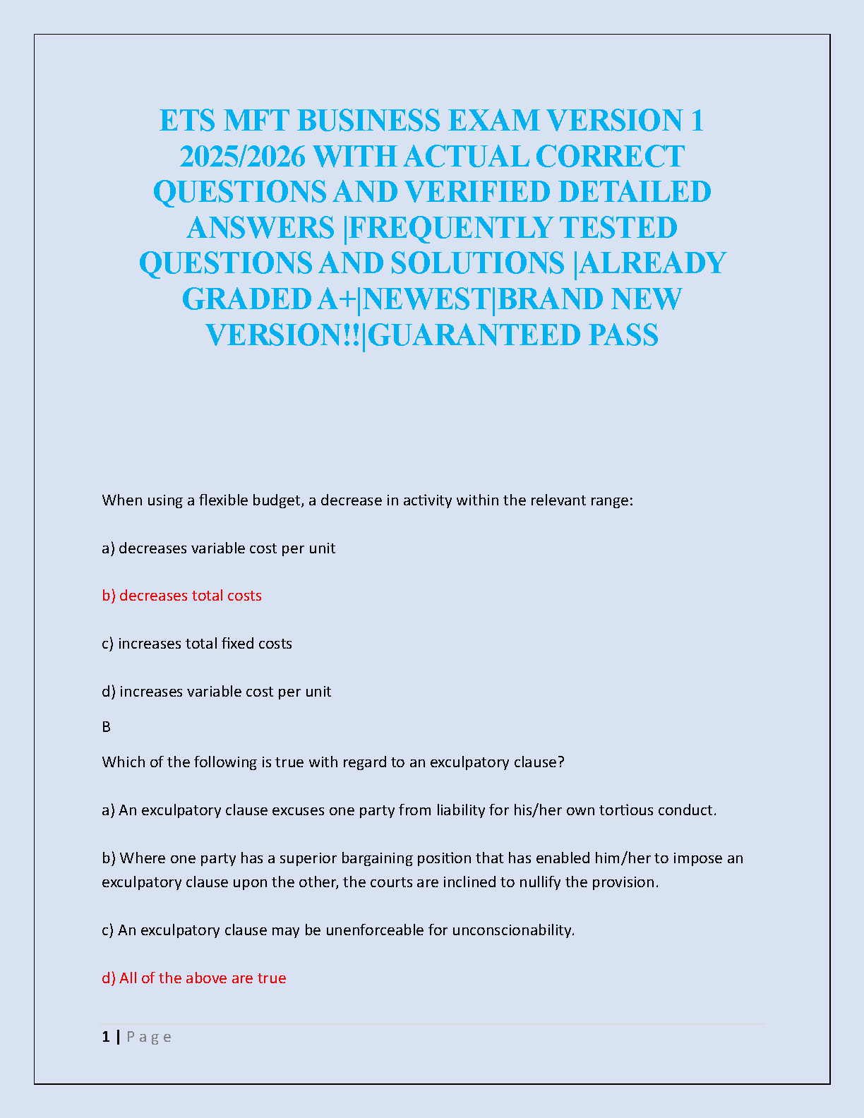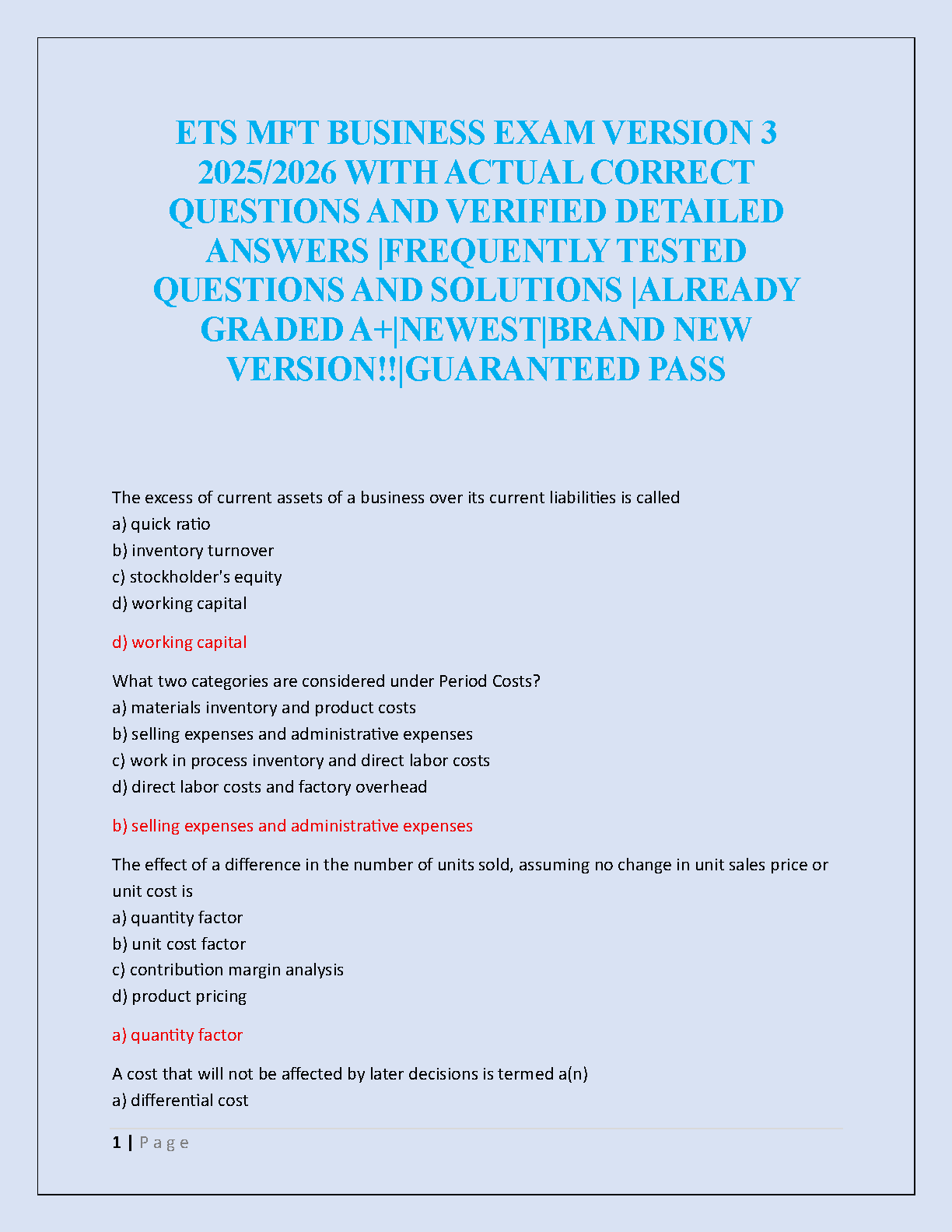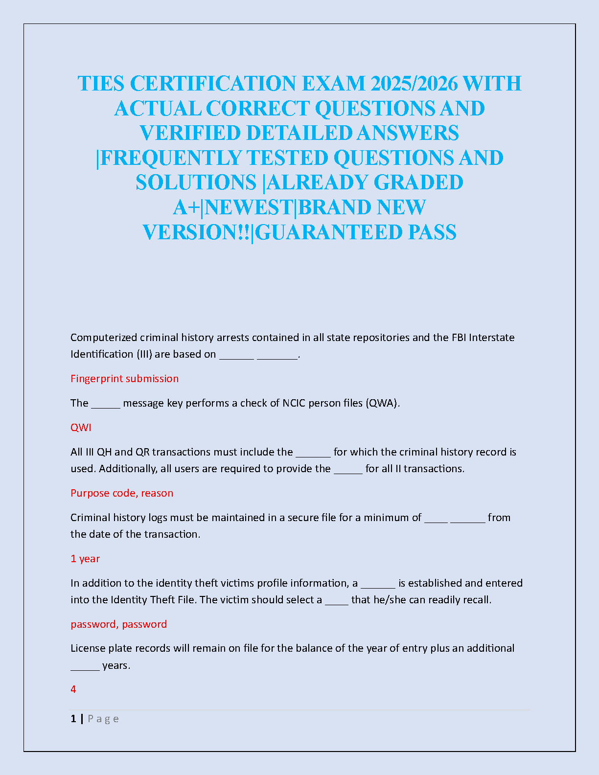 HackedExams is the website to download all resources for students who want to pass their exams on their first attempt. Our website offers all exam materials, including practice questions with answers, test banks, study guides, notes, summaries, and more for nursing, computer science, biology, psychology, law, and others. With resources from popular exam bodies like ATI, AQA, OCR, Edexcel, Comptia, Azure, and more, you'll easily find everything you need to get certified. Avoid resitting exams; trust in HackedExams.com to give you the resources to pass on your first attempt. Get access to exams from 2019 to 2023 and start your path to success today. "Avoid resits, get certified within days, and pass your exams on your first attempt."